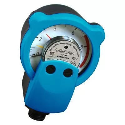 РДС-30 реле давления воды стрелочное - устройство, способное заменить стандартное электромеханическое реле давления и манометр. Предназначено для обеспечения автоматической работы однофазных насосов в системах водоснабжения и полива, а также защиты насоса от работы по «сухому» ходу. Принцип работы защиты от «сухого хода» заключается в том, что, если в течение 30 секунд давление в системе не достигнет нижнего порога давления, РДС отключит насос и перейдёт в режим защиты от сухого хода. Для возобновления работы насоса необходимо нажать кнопку старт/стоп после чего РДС перейдет в рабочий режим. Предельно допустимые значения включения и выключения насоса визуально устанавливаются с помощью регулировочных винтов и разноцветных стрелочных указателей (маркеров), что дает возможность легко зафиксировать пороги включения и выключения насоса, а встроенный манометр позволяет контролировать текущее давление в системе водоснабжения.