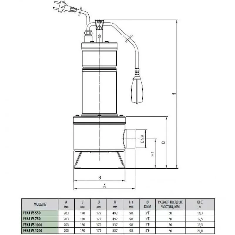 Схема фекального насоса DAB FEKA VS 1000 T-NA