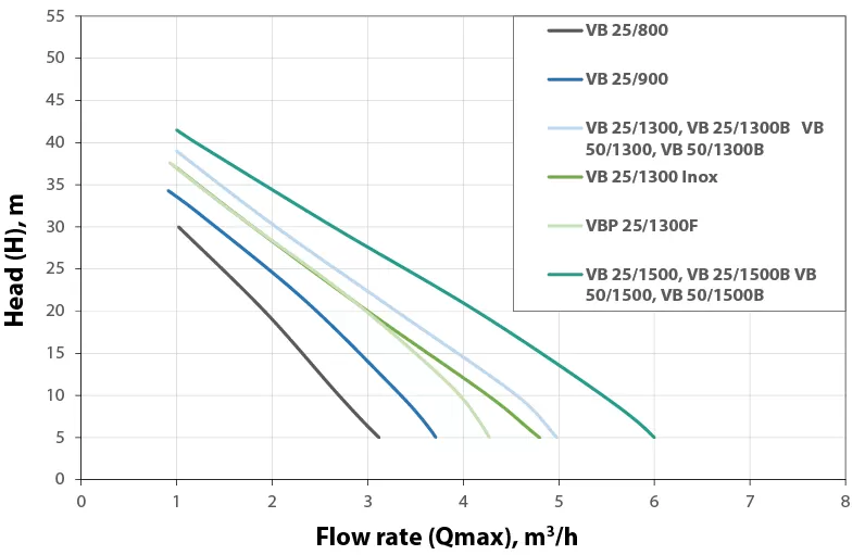 Графические характеристики насосной станции Elpumps VB 50/1300