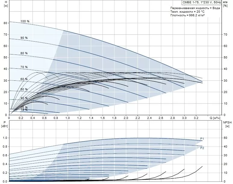Графические характеристики GRUNDFOS CMBE 1-75