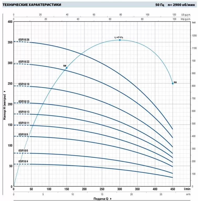 Устройство насоса Pedrollo 6SR18/13-P: